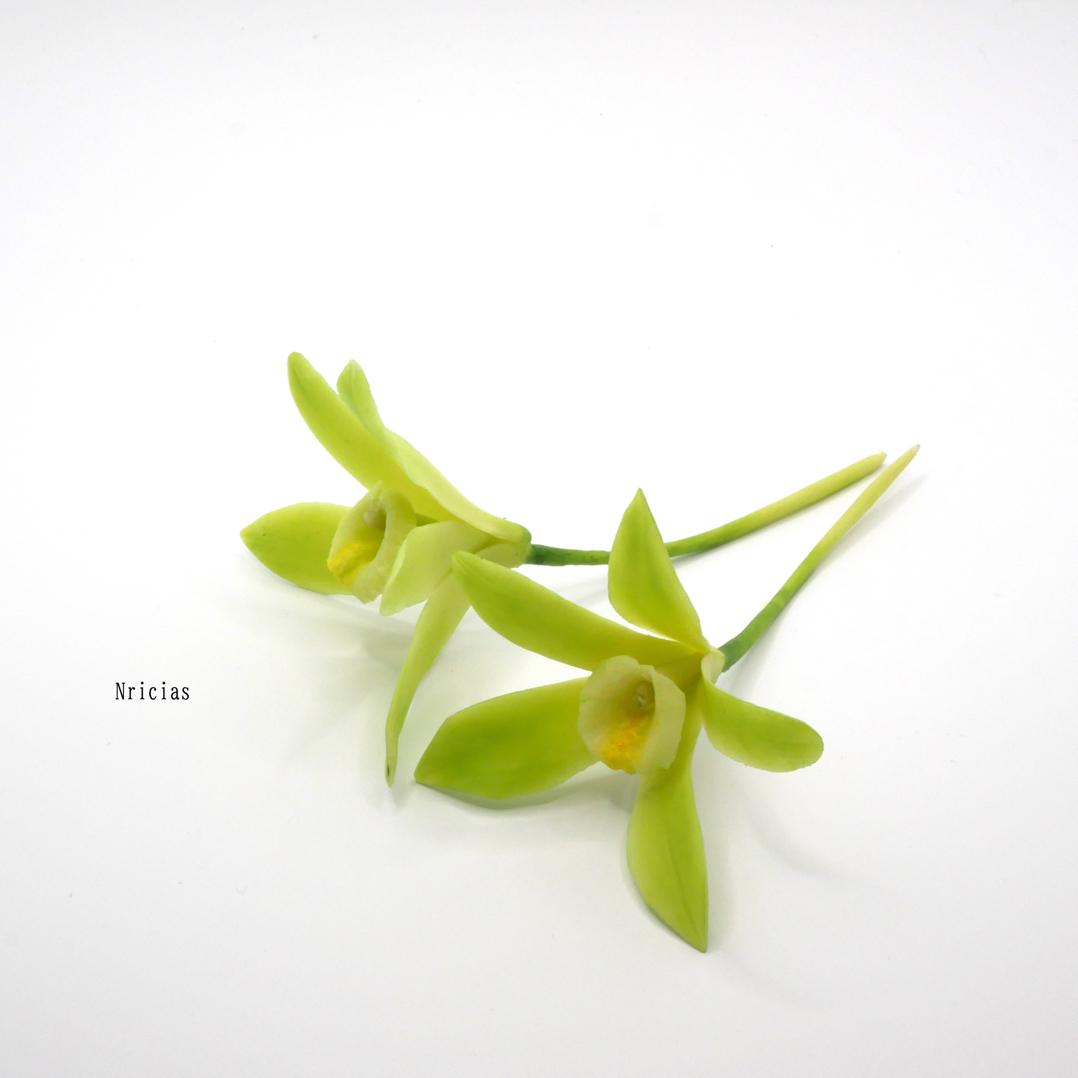 バニラの花 緑 2輪 クレイフラワー ギフト 撮影用 NO.V2
